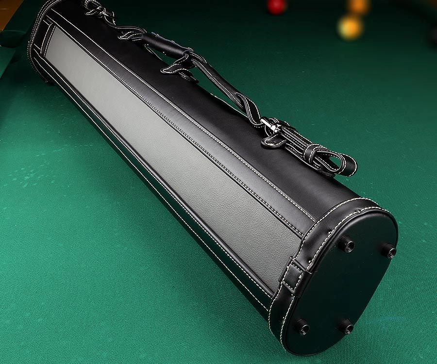 Made of black vinyl and white stitching with all black hardware this case looks sweet. It has carrying handle on the top and side and a shoulder strap.