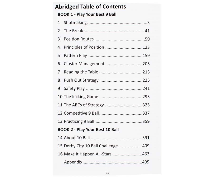 “Play Your Best 9 & 10 Ball” by Phil Capelle is a complete textbook on 9 and 10-ball strategies. This book is recommended by some of the best known people in the pool and billiards industry. This book includes 120 lessons on 10 ball, 230 plus illustrations of the pros. 70 black cue ball patterns from pro 10 Ball as well as over 100 key position routes and so much more. It is no longer spiral bound. We are updating the image shortly